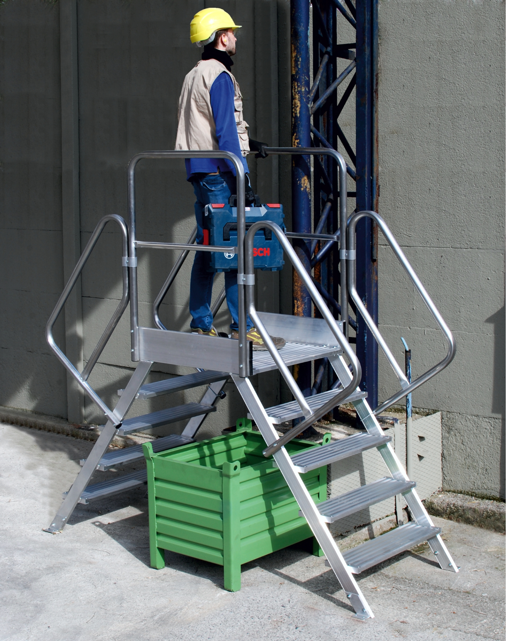 Ce modèle offre un confort optimal aux opérateurs grâce à son inclinaison de 55° et des marches de 200 mm de profondeur.