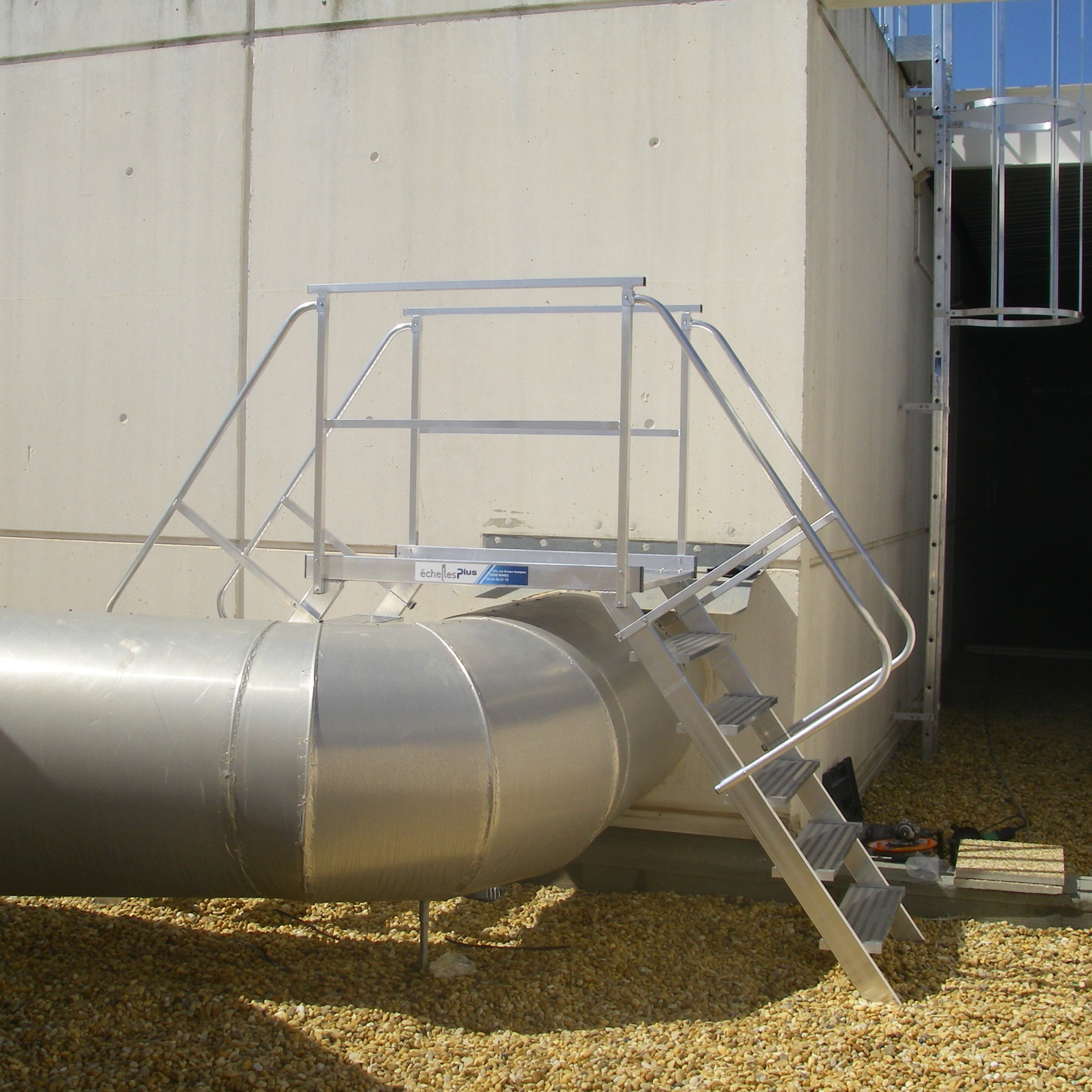 La passerelle de franchissement (ou saut de loup) permet de franchir les différents obstacles présents sur les toitures techniques, tels que les tuyauteries, murs coupe-feu ou tout autre édicules.